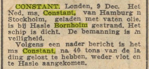 [10-dec-1934] Artikel – Constant gestrand bij Bornholm