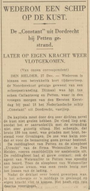 [25-dec-1935] Artikel – Constant strandt op eerste kerstdag bij Petten